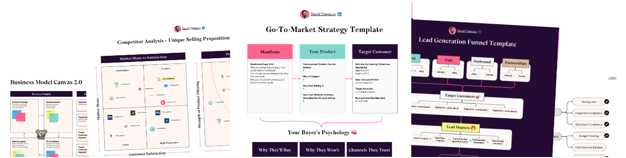 Comprehensive video tutorials on every template, where I teach you every key decision and step. You’ll learn all of the fundamentals of GTM strategy and become an expert yourself in less than 2 hours