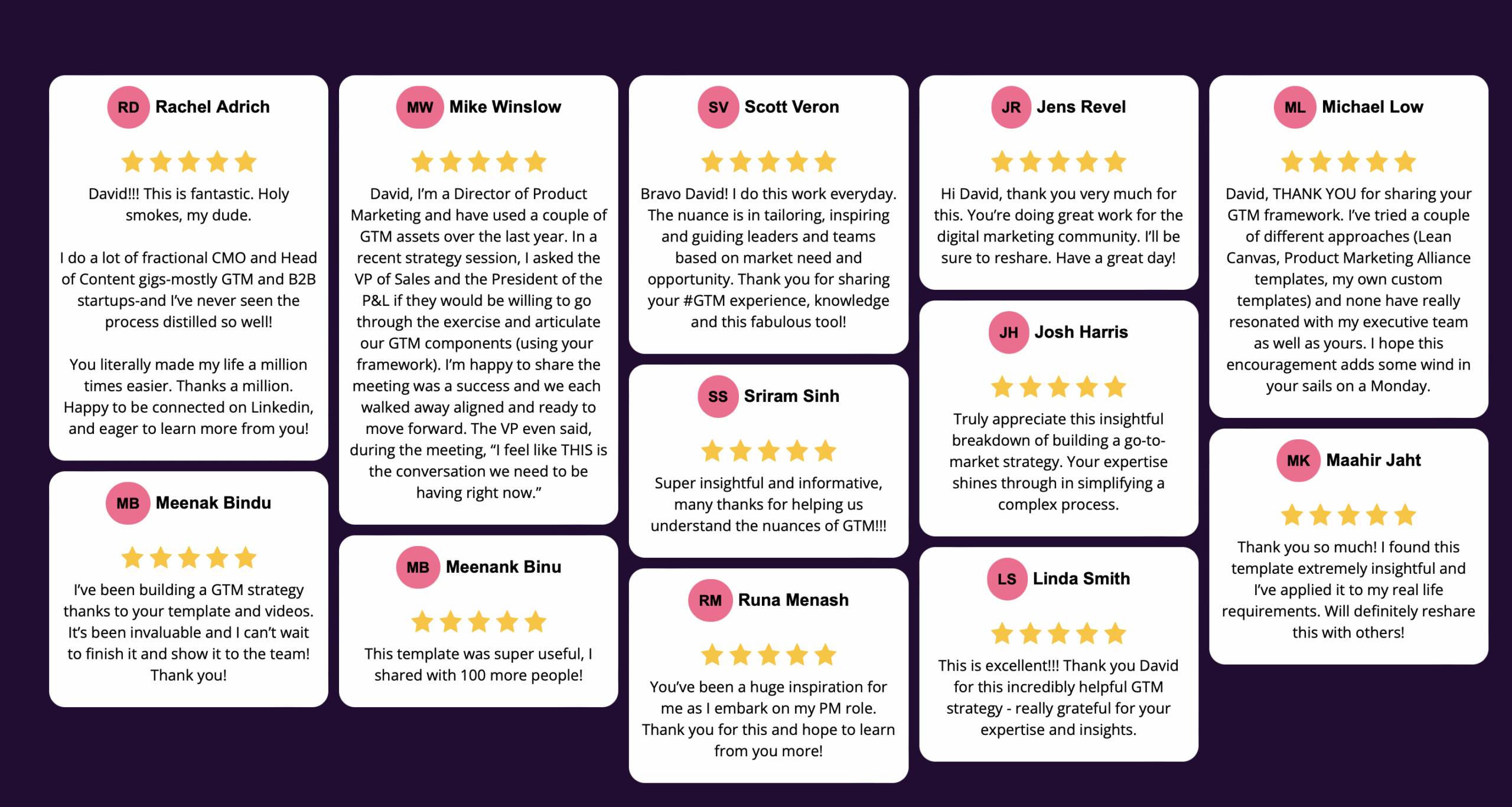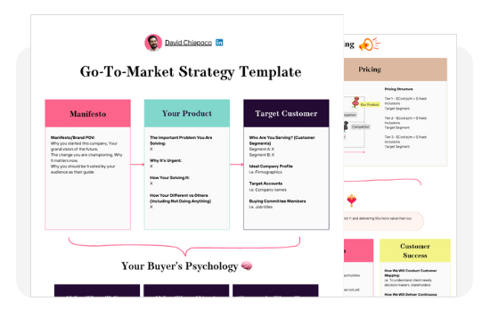 I originally built these templates for my consulting. I wanted a way to build a world-class GTM strategy for my clients as fast as possible, that leveraged every success, failure, eureka moment, and priceless insight I’ve experienced in my journey so far.